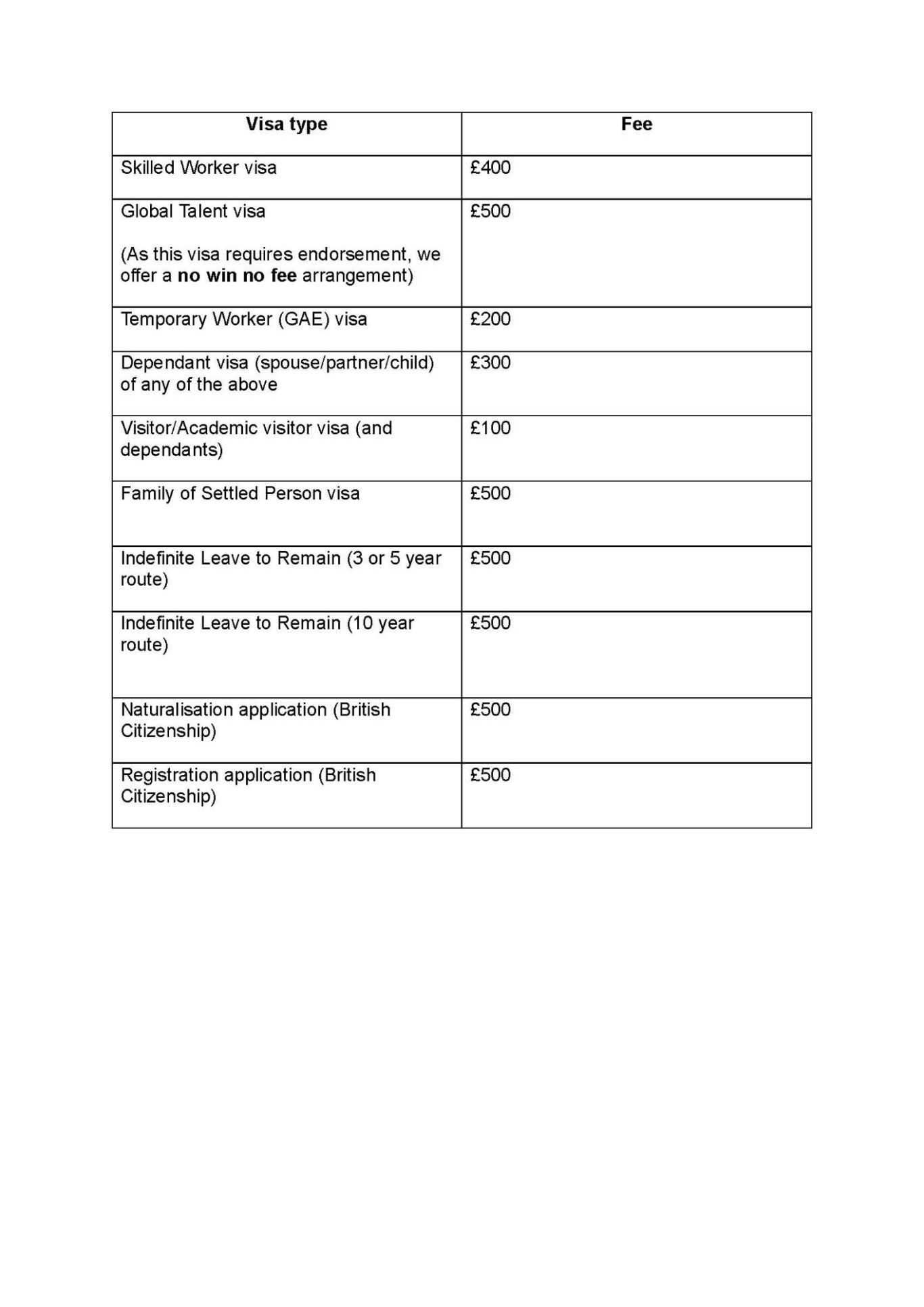 Please note that for Global Talent applications, we offer this fee on a no win no fee basis
